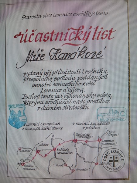 Právě v ní jsem se dočetl o tom, jak museli lomničtí a nejen lomničtí obyvatelé vesnic bývalého sovineckého panství chodit robotovat do vzdálených hospodářských hospodářských dvorů, sovineckých pánů. A tak nás společně s tehdejším místostarostou obce panem Karlem Fickem napadlo, že bychom měli současným obyvatelům nějakým způsobem připomnět, jakou strastiplnou cestu museli občané obcí sovineckého panství vykonávat za povinnou robotou. A nápad byl na světě.